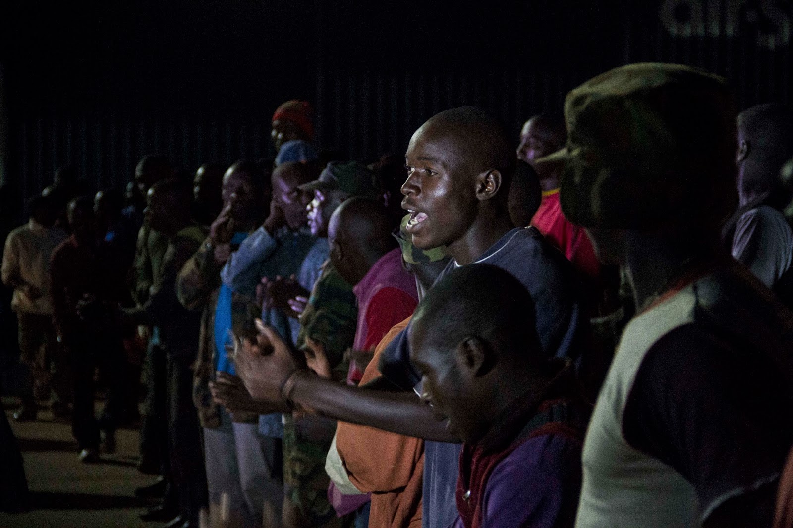 | Members of the Democratic Republic of Congo M23 rebel group are seen on December 16, 2014 at the Entebbe airbase waiting to be taken back to their country |